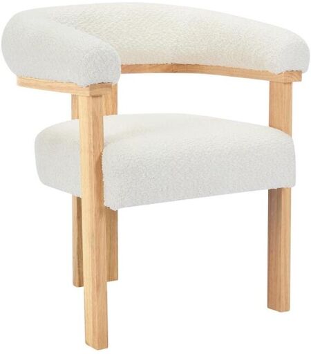 Chaise LIVELIA avec accoudoirs - Matières : Tissu bouclette et bois d'hévéa - Coloris : Blanc et naturel - Style : Design - Dimensions : L64 x P60 x H78 cm - Hauteur d'assise : 48 cm - Pour un séjour assurément design, adoptez les chaises LIVELIA ! ...