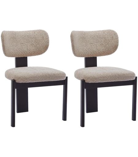Vente-unique Lot de 2 chaises en tissu bouclette et bois d'hévéa noir - Taupe - WILANA