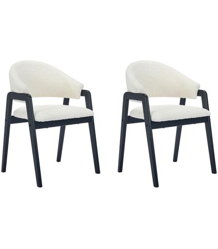 Vente-unique Lot de 2 chaises avec accoudoirs en tissu bouclette et bois d'hévéa - Blanc et Noir - SOLUNA