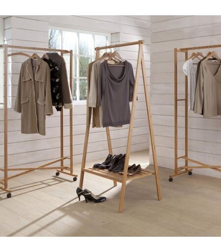 Le portant pliable avec étagère en bambou. Il se glisse juste là où vous en avez besoin : dressing, vestiaire, entrée, chambre...Description Pliable 1 étagère Votre portant pliable est vendu à monter soi-même En bambou finition nitrocellulosiqueDimensions Plié L83,5 x H170 x P9,5 cm Déplié L83,5 x H170 x P56 cm BOIS ISSU DE FORÊTS GÉRÉES PLUS DURABLEMENT. Le bois certifié FSC® est issu de forêts bien gérées sur le plan environnemental, social et économique.Dimensions et poids du colis :1 colis 183 x 30 x 9 cm 7,5 kg ...