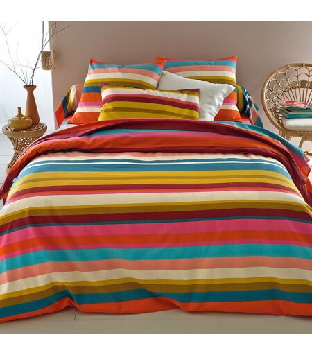 Le drap pur coton imprimé PARAISO. Un imprimé de rayures de couleurs vives et horizontales dans la tradition des imprimés d'Amérique du Sud.Le coton fait partie de notre quotidien. On l'aime pour sa souplesse et sa douceur. Facile à vivre, il est idéal pour les lits des petits comme des grands !Description Imprimé rayures multicolores horizontales 100% coton 57 fils/cm²Entretien Température de lavage 60° En lavant votre linge à 40° au lieu de 60°, vous limitez la consommation d'énergieDimensions 180 x 290 cm : 1 personne 240 x 290 cm : 2 personnes 270 x 290 cm : 2 personnes OEKO-TEX® Standard 100. La certification OEKO-TEX® Standard 100 contrôle les substances nocives des produits textiles via un label indépendant et international. ...