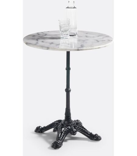 Envie d'un déjeuner en terrasse ? Avec la table de jardin Redville, tout droit inspirée des cafés parisiens, l'illusion est parfaite. Il ne reste plus qu'à choisir le menu.Description Plateau rond en marbre blanc, légèrement veiné, Ø65 cm, ép. 18 mm. Pied en fonte recouverte peinture époxy noire. Pied forme 4 branches.DimensionsTotales Diamètre : 65 cm Hauteur : 72 cm Ce produit est vendu prêt à monter. Dimensions et poids des colis :1 colis 70 x 70 x H20 cm 33,1 kg ...