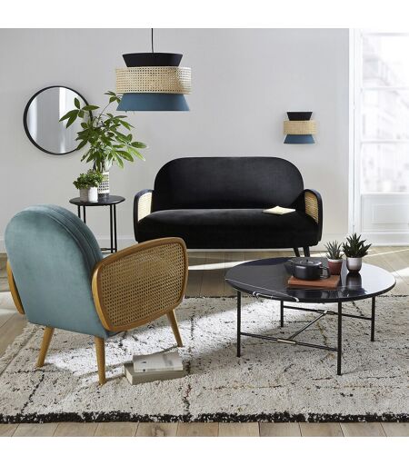 L'abat-jour pour suspension Dolkie by La redoute Intérieurs. Cerclé d'un anneau réalisé dans un cannage de rotin, il affiche un style vintage très tendance. Fabrication française.Description Structure en acier galvanisé recouvert d'une peinture époxy blanche Lampe constituée de 3 abat-jours : 2 de forme conique en polycoton, 1 central de forme cylindrique en cannage de rotin Support pour douille E27 Ce luminaire est compatible avec des ampoules des classes énergétiques : A à E. Non électrifié. A noter : le système électrique est vendu séparément. Retrouvez-le en tapant « Câble BAULIND » dans le moteur de recherche.Dimensions Hauteur totale : 29 cm Diamètre : 40 cm FABRIQUÉ EN FRANCE.Dimensions et poids du colis 1 colis 43 x 43 x 33 cm 1 kg ...