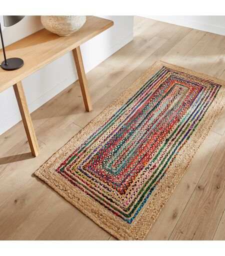 Tressé à la main, le tapis Jaco mixe jute et coton recyclé pour un effet multicolore au rendu joyeux. Il est proposé dans 2 longueurs spécialement adaptées pour les couloirs, pièces étroites ou descente de lit.Description 60% jute, 40% coton Coton recyclé Poids : 2000 g/m² Type de fabrication : Tressé à la mainDimensions Largeur 80 x Longueur 200 cm Largeur 80 x Longueur 250 cmEntretien Aspirer régulièrement Nettoyer immédiatement les tâches avec un chiffon mouillé et propreLivraisonCe produit sera livré chez vous sur rendez-vous. FIBRE ISSUE D'UNE CULTURE ÉCONOME EN EAU. Le jute est une matière qui nécessite peu d’irrigation et très peu de produits phytosanitaires. COTON RECYCLÉ. Utiliser du coton recyclé, c'est préserver certaines ressources et réduire les déchets.Dimensions et poids du colis Taille 1 : 83 x 14 x 14 cm - 3,5 kg Taille 2 : 83 x 16 x 16 cm - 4,4 kg ...