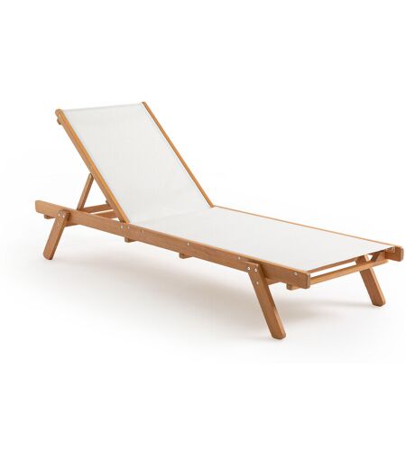 En bois d'eucalyptus et toile polyester, le bain de soleil Aurette arbore un design contemporain. Son dossier réglable vous permet de trouver la position idéale pour vous prélasser au soleil.Description Structure en eucalyptus certifié FSC®, finition huilée Toile 100% polyester 600 g/m2 Dossier réglable sur 5 positions, d'assise à couchéeQualité L'eucalyptus est un bois dur qui résiste bien aux attaques d'insectes et de champignons. Pour l'entretien, il vous suffit de passer une couche d'huile 2 fois par an après avoir légèrement poncé la surface. Dimensions Longueur : 195 cm Hauteur : 30 cm Profondeur : 66 cm Poids : 10,5 kg Ce produit est vendu à monter soi-même. BOIS ISSU DE FORÊTS GÉRÉES PLUS DURABLEMENT. Le bois certifié FSC® est issu de forêts bien gérées sur le plan environnemental, social et économique.Dimensions et poids du colis1 colis L201 x H10 x P65,5 cm. 12,5 kg. ...