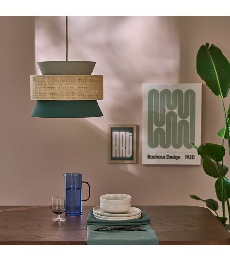 Cerclé d'un anneau réalisé en raphia, il affiche un style vintage très tendance. Fabrication française. Non électrifié.Description Structure en acier galvanisé recouvert d'une peinture époxy Lampe constituée de 3 abat-jours : 2 de forme conique en polycoton, 1 central de forme cylindrique en raphia coloris naturel Support pour douille E27 Ce luminaire est compatible avec des ampoules des classes énergétiques : A à E A noter : le système électrique est vendu séparément. Retrouvez-le en tapant « Câble pour suspension BAULIND » dans le moteur de recherche.Dimensions Diamètre : 40 cm Hauteur totale : 29 cmRetrouvez toute la collection luminaires sur laredoute.be FABRIQUÉ EN FRANCE.Dimensions et poids du colis 1 colis 41 x 41 x 33 cm 0,5 kg ...