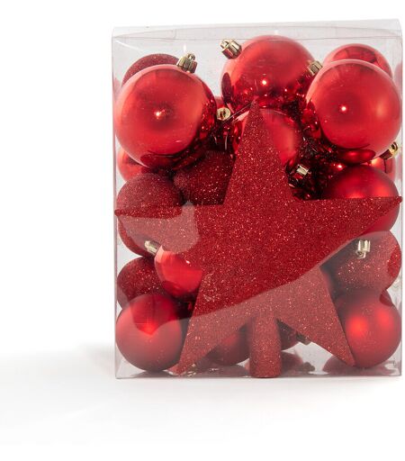 Un ensemble parfait de 33 pièces pour habiller votre arbre de Noël.Description En polystyrène 20 boules brillantes 6 boules mates 3 boules à paillettes 3 stalactites 1 étoile ...