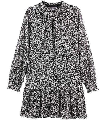 Cette petite robe légère s'habille d'un imprimé fleuri plein de fraîcheur. On aime son petit col volanté et ses poignets smockés Facile à vivre, une pièce essentielle du dressing.Détails produit Forme : évasée, patineuse Courte Manches longues, poignets smockés Col rond volanté, fermé par agrafe Motif floralMesures du produit en taille 38/M Longueur : 90 cm Longueur des manches : 65 cmComposition et Entretien Matière principale : 100% polyester Doublure : 100% polyester Température de lavage 30° cycle délicat Température de repassage faible / blanchiment interdit Ne pas sécher en tambour Pas de nettoyage à sec OEKO-TEX® Standard 100. La certification OEKO-TEX® Standard 100 contrôle les substances nocives des produits textiles via un label indépendant et international. ...