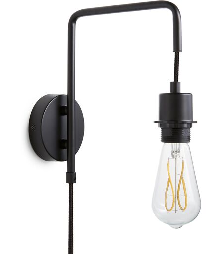 Subtile et discrète, tendance néo industrielle : la gamme Hiba privilégie le métal. L'applique Hiba séduit par sa ligne graphique et son design épuré. À associer à l’abat-jour de votre choix pour composer une applique unique.Description Applique sans abat-jour en fer recouvert d'une peinture époxy noire Câble torsadé recouvert de coton Douille E27 pour ampoule de 60W max (non fournie) Abat-jour non fourni, vendu sur le site Poids maximum de l'abat-jour : 0,6 kgDimensions Largeur : 10 cm Hauteur : 25,5 cm Profondeur : 24 cm Socle : Ø10 cmDimensions et poids du colis1 colis L30 x H13,5 x P26,5 cm. 0,72 kg. ...