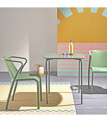 La couleur s’invite au jardin ! Légère et facile à ranger, la table Dune s’adapte à tous les espaces : terrasse, balcon, jardin... Faites de votre extérieur un espace accueillant.Description En acier galvanisé teinté, finition époxy Patins sous les pieds en pvcDimensions Largeur : 70 cm Hauteur : 74,8 cm Profondeur : 70 cm Poids : 13 kgDimensions et poids du colis1 colis L76 x H12,5 x P76 cm. 15,6 kg. ...