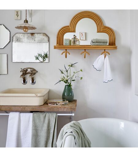 Avec le mobilier en rotin Rivia, c'est tout un univers d'élégance qui se dessine, apportant à votre intérieur une atmosphère maison de campagne au style bourgeois.À la fois traditionnelle et raffinée, la patère miroir en rotin Rivia est idéale dans une chambre, une entrée ou un séjour. Une création La Redoute Intérieurs.Description Structure en canne de rotin semi-poli, finition vernis nitrocellulosique Étagère en contreplaqué de bouleau et rotin tressé, finition vernis nitrocellulosique 1 miroir 3 patères en canne de rotin semi-poli, finition vernis nitrocellulosique Système de fixation murale inclus, vis et chevilles non fourniesDimensionsTotales Largeur : 73 cm Hauteur : 57,5 cm Profondeur : 28 cm Poids : 4,5 kgUtiles Miroir : L53,5 x H28,5 cm Etagère : L73 x P26,5 cm Ce produit est vendu monté.Dimensions et poids du colis 1 colis L81,5 x H66 x P37 cm. 9 kg. ...