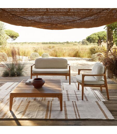 Dessus à larges lattes, piètement arrondi, finition chanfreinée... la table basse Cordano a été conçue en teck massif, un bois robuste au toucher doux. Le plateau, légèrement surélevé, souligne l'élégance contemporaine du meuble.Un design intemporel signé AMPM.Description Plateau en teck massif Piètement en teck massif Bois certifiés FSC®Qualité Le teck massif est, par excellence, l'essence de bois adaptée à l'extérieur. Il est imprégné d'une huile qui lui assure sa durabilité et résistance face aux intempéries et aux agressions d'insectes et de champignons.Entretien Les températures basses sont susceptibles d'altérer le bon fonctionnement et l’état de surface de votre mobilier d’extérieur. Nous vous conseillons donc de le remiser dans un local sec, aéré et clos. Nous déconseillons fortement l'utilisation d'une bâche, car elle jouera le rôle d’étuve et abimera les états de surface ; les produits bois et métal sont particulièrement concernés. Avant tout remisage, pensez à bien nettoyer et sécher les produits, afin de prévenir l'apparition de moisissures ou d'odeurs désagréables. Il est en tous les cas et quel que soit le matériau déconseillé de laisser le mobilier à l’extérieur sans protections, particulièrement pendant les intempéries et la phase hivernale.Dimensions Largeur : 100 Hauteur : 32 cm Profondeur : 100 cmLivraisonCe produit est vendu prêt à monter. Il sera livré chez vous sur rendez-vous.Attention ! Veuillez vérifier que les ouvertures (portes, escaliers, ascenseurs) permettront le passage du colis lors de la livraison. BOIS ISSU DE FORÊTS GÉRÉES PLUS DURABLEMENT. Le bois certifié FSC® est issu de forêts bien gérées sur le plan environnemental, social et économique.Dimensions et poids du colis1 colis L108 x H40 x P108 cm, 30 kg ...