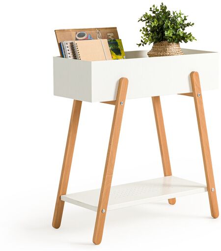 Idéale dans un salon ou une chambre, l'étagère en métal fer et bois d'hévéa Jarie exposera objets de décoration, plantes et livres !Description Piètement en hévéa massif finition vernis nitrocellulosique 1 bac et 1 étagère en fer teinté blanc finition époxyDimensionsTotales Largeur : 60,5 cm Hauteur : 65,7 cm Profondeur : 28 cmUtiles Bac : L60,5 x H14,6 x P24,5 cm Etagère : L55 x H1,8 x P24,5 cm Poids : 4,8 kg Ce produit est vendu prêt à monter.Dimensions et poids du colis 1 colis L70 x H25 x P35 cm. 7,5 kg. ...