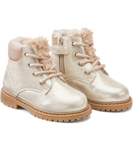 Détails produit Hauteur de chaussure : 10 cm en taille 21 Talon plat Fermeture : A lacets et zippée Bout rond Intérieur fourré Semelle crantéeComposition et Entretien Dessus/Tige : 100% polyuréthane Doublure : 100% polyester Semelle intérieure : 100% polyester Semelle extérieure : 100% élastomère ...