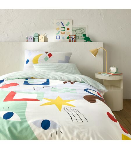 La parure de lit imprimée Olias composée d’une housse de couette et d’une taie d’oreiller rectangulaire s’empare du motif géométrique dans une explosion de teintes vivifiantes. Le verso en jeu de rayures rehausse l’énergie des motifs imprimés.Du linge de lit 100% coton, une création signée La Redoute Intérieurs. Le coton fait partie de notre quotidien. On l'aime pour sa souplesse et sa douceur.Description 100% coton, 120 g/m2 Contient 50% de coton recyclé 57 fils/cm² Imprimé recto/verso Base droite boutonnéeEntretien Température de lavage 40°Dimensions 140 x 200 cm : 1 personne + 50 x 70 cm : taie rectangulaire 160 x 210 cm : 1-2 personnes + 50 x 70 cm : taie rectangulaire COTON RECYCLÉ. Utiliser du coton recyclé, c'est préserver certaines ressources et réduire les déchets. OEKO-TEX® Standard 100. La certification OEKO-TEX® Standard 100 contrôle les substances nocives des produits textiles via un label indépendant et international. ...