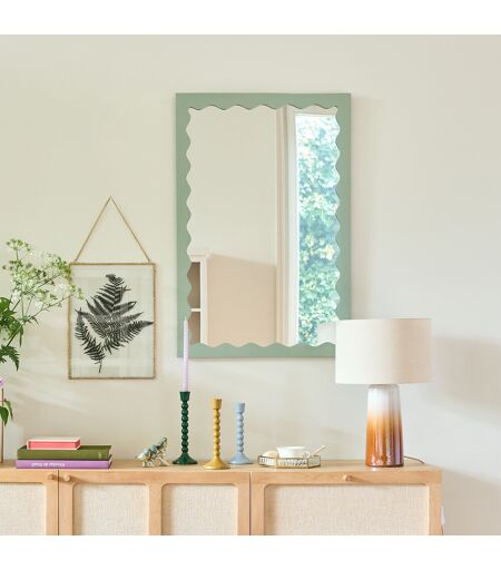 Avec ses courbes délicates et sa teinte pastel, ce miroir 60x90 cm capte la lumière et adoucit les lignes. Un objet poétique qui invite à la poésie et au raffinement.Description Structure en MDF certifié FSC Fixation murale (vis et chevilles non fournies) Dimensions Longueur : 60 cm Hauteur : 90 cm Épaisseur : 1,5 cm BOIS ISSU DE FORÊTS GÉRÉES PLUS DURABLEMENT. Le bois certifié FSC® est issu de forêts bien gérées sur le plan environnemental, social et économique.Dimensions et poids des colis 1 colis L70 x H100 x P8 cm, 9,48 kg ...