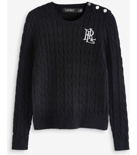 Lauren Ralph Lauren updates the classic cable-knit sweater with signature button embellishments at the shoulder and an "LRL"-embroidered logo at the chest. Cut for a slim-fitting silhouette, it's knit with combed cotton for a soft hand. 100% de coton. ...