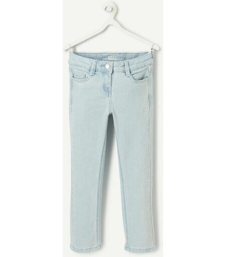 Détails produit Slim Taille standard Ceinture à passants Fermeture zippée et pressionnée 5 poches Strass sur les côtésComposition et Entretien 99% coton, 1% élasthanne Pour l'entretien, merci de vous référer aux indications figurant sur l'étiquette du produit COTON RECYCLÉ. Utiliser du coton recyclé, c'est préserver certaines ressources et réduire les déchets. DÉLAVAGE ÉCONOME EN EAU. Ce délavage permet de réduire la consommation d’eau utilisée par rapport à un délavage classique. ...