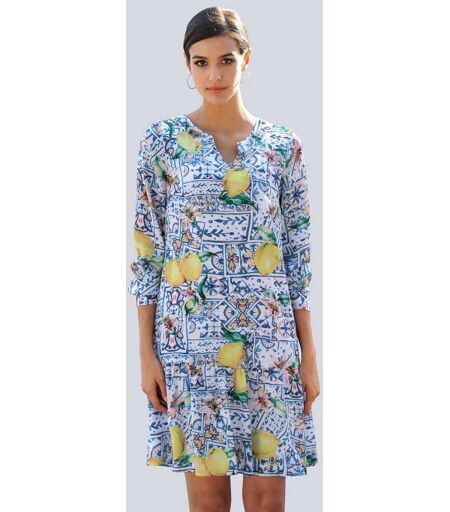 Avec cette robe imprimée d'Alba Moda, vous êtes sûre de recevoir des compliments. Le motif graphique est particulièrement remarquable. Elle possède une encolure ronde. Grâce à sa coupe qui épouse la silhouette, elle est particulièrement flatteuse. Manches longues avec poignets. Fabriquée en viscose. Cette robe imprimée d'Alba Moda n'est plus qu'à quelques clics de votre garde-robe - commandez-la dès maintenant! ...