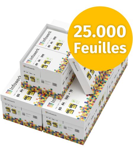 Infowerk Papier pour imprimante Papier à copier 25000 feuilles 50 x 500 A4 80g Premium extra-blanc CIE 160 Vainqueur du test PEFC Certificat environnemental