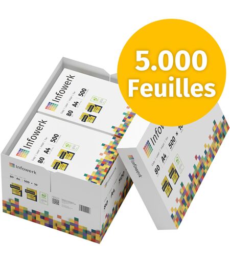 Infowerk Papier pour imprimante Papier à copier 5000 feuilles 10 x 500 A4 80g Premium extra-blanc CIE 160 Vainqueur du test PEFC Certificat environnemental