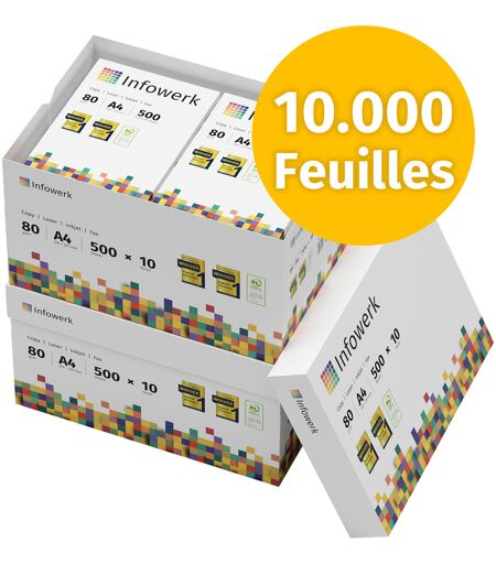 Infowerk Papier pour imprimante Papier à copier 10000 feuilles 20 x 500 A4 80g Premium extra-blanc CIE 160 Vainqueur du test PEFC Certificat environnemental