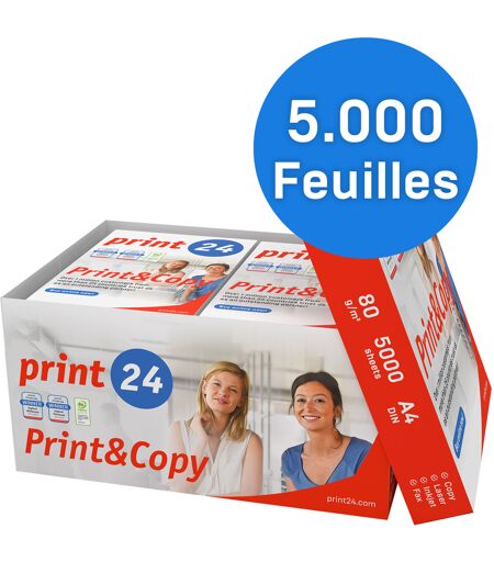 print24 Papier pour imprimante Papier à copier 5000 feuilles 10 x 500 A4 80g Premium extra-blanc CIE 160 Vainqueur du test PEFC Certificat environnemental