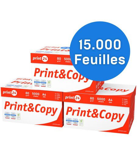 print24 Papier pour imprimante Papier à copier 15000 feuilles 30 x 500 A4 80g Premium extra-blanc CIE 160 Vainqueur du test PEFC Certificat environnemental