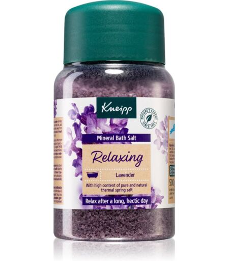 Kneipp Relaxing Lavender, 500 g, Sel de bain pour femme, Vous aimez les longs bains chauds ? Avec le sel de bain Kneipp Relaxing Lavender, vous les apprécierez encore plus. Il améliorera votre rituel de détente préféré et le fera passer à un tout autre niveau. Il vous permettra de créer chez vous un bain de sel parfumé qui apaisera les tensions et le stress, tout vous envahissant d’un sentiment de bien-être. Si le sel, à l’odeur enivrante, contribuera à vous relaxer comme vous le méritez, il aidera également votre corps à se régénérer. En effet, le sel étant riche en minéraux naturels, il a un effet régénérateur et contribue à réduire les problèmes de peau. Le produit : renforce l’immunité de la peau adoucit et apaise la peau régénère la peau sent bon Mode d’emploi : Versez dans le bain chaud et laissez dissoudre. Toutes les substances importantes et thérapeutiques se libèrent dans l’eau. ...