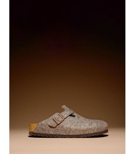 This version of the Boston clog, a classic BIRKENSTOCK model, comes with a shaft in soft, high-quality woolen felt. The clog can be adapted to all feet thanks to a strap on the upper edge of the shaft and a sturdy metal buckle.Anatomically shaped cork-latex footbed Upper: wool felt Lining: suede Sole: EVA Details: individually adjustable metal pin buckle Made in Germany Upper - Textile, Lining and Sock - Leather, Sole - Other Materials. ...