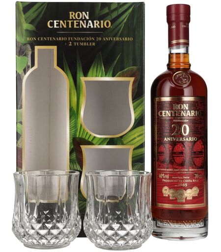 Ron Centenario FUNDACIÓN 20 Sistema Solera Rum 40% Vol. 0,7l en boîte cadeau avec 2 Tumbler