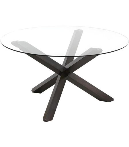 Hêtre massif. Plateau verre trempé épaisseur 10mm. Table ronde 3 pieds. Coloris wengé. Dimensions : diamètre 140 x hauteur 75,5 cm. 4 couverts ...