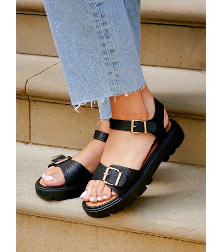 Linzi Linzi Black Comet Flatform Sandals With Buckle Detail