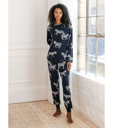 Nights on the sofa have never been so wild. With a bold, beautiful print and a loose fit, our navy Zebra Long Pyjamas Set are the perfect combination of style and cosiness. The drawstring waistband offers ultimate comfort for lazing. Lavable en machine. 95% Polyester, 5% Elasthanne. ...
