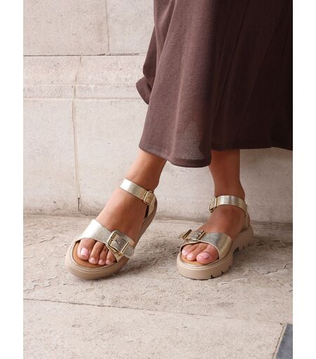 Linzi Linzi Gold Comet Flatform Sandals With Buckle Detail