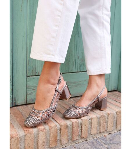 Transform your summer look with our Sandria woven court heels. Featuring a closed rounded toe and a slingback strap, crafted from a delicate handwoven pattern. Complete with a 6cm block heel and cushioned insole, providing both style and comfort. Tige - autres matières, doublure et première de propreté - autres matériaux, semelle - autres matériaux. ...