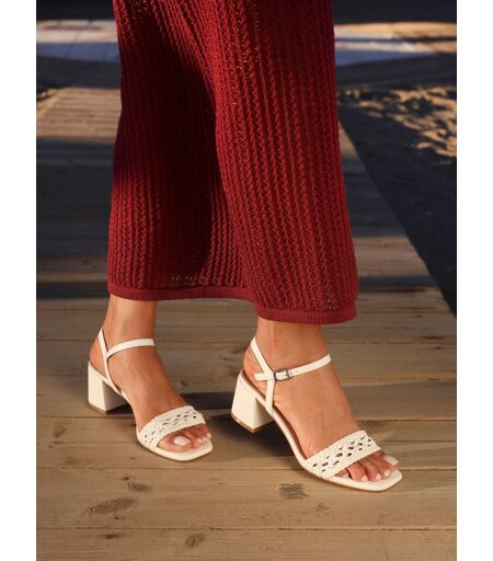 Step into elegance with our Ruthie heeled sandals, featuring a meticulously handwoven front strap with an open toe design. The low block heel and a wrap-around ankle strap add a touch of sophistication, while the cushioned insole ensures all day comfort. Tige - autres matières, doublure et première de propreté - autres matériaux, semelle - autres matériaux. ...