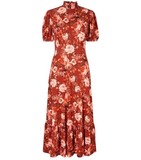 Joe Browns Joe Browns Robe mi-longue oversize en jersey à col montant à fleurs automnales Marron