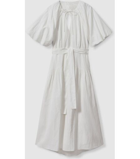 Reiss Robe mi-longue Reiss Alice à manches bouffantes en mélange de lyocell Blanc