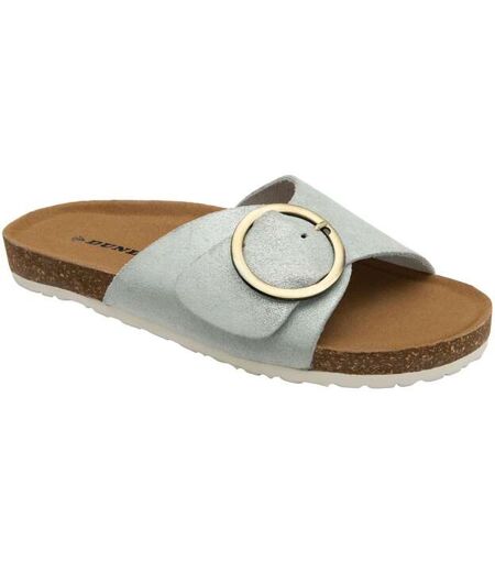 Dunlop Chrome Black Ladies Single Large Buckle Footbed Sandals