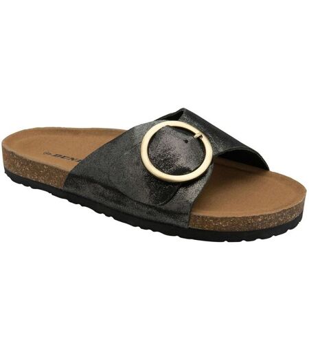 Dunlop Charcoal Black Ladies Single Large Buckle Footbed Sandals