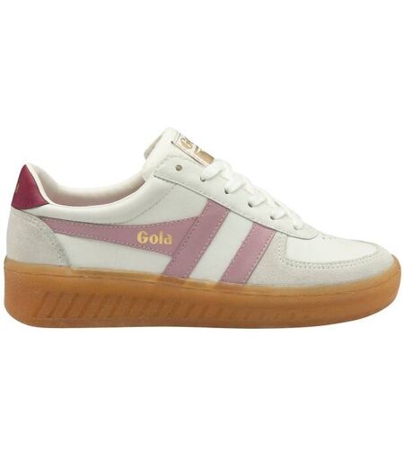 Grandslam Elite takes the gum sole trainer trend up a notch. Gola's best selling vintage tennis style Grandslam is complemented here with a gum sole and a feminine colour palette of white with light candy and cerise. Upper - Leather, Lining and Sock - Textile, Sole - Other Materials. ...