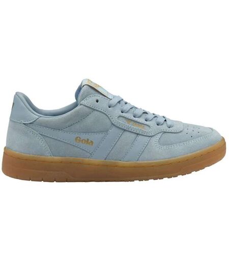 Gola style Hawk Suede '86 in air blue gives a season colour pop to any trainer collection. Hawk Suede ‘86 for women incorporates layered panels on a classic court-sport inspired upper with full gum outsole to give an effortless contemporary look. Upper - Leather, Lining and Sock - Other Materials, Sole - Other Materials. ...