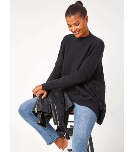 Stay cosy and stylish this Autumn Winter with our longline knit jumper. Crafted with a soft hand touch, this jumper features intricate cable knit detailing for added texture. With a flattering high neckline and full-length sleeves, this piece finishes below the hips. The jumper shape is ideal for daywear, making it a versatile addition to your wardrobe. Pair with wide-leg trousers and ankle boots for a complete fall look! Machine washable. 50% Viscose, 50% Nylon. ...