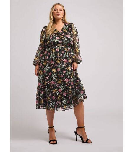 Yours Curve Yours Curve Black London Floral Midaxi Dress Black