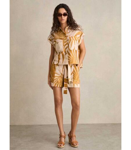 The Hannah shirt is a lightweight style, printed with a bold palm motif for a statement warm-weather look. It's boxy silhouette is complemented by flap pockets and cuffed cap sleeves. Palm print. Classic collar. Cuffed cap sleeves. Flap patch pockets. Single box pleat to reverse. Front button placket. The model is wearing a size 8. Measurements of model: 5ft9.5 / 176.5cm. Lavable en machine. 90% Viscose, 10% Nylon. ...