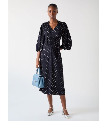 LK Bennett LK Bennett Blue Hester Viscose 40S Spot Tie Neck Gather Front Dress Blue