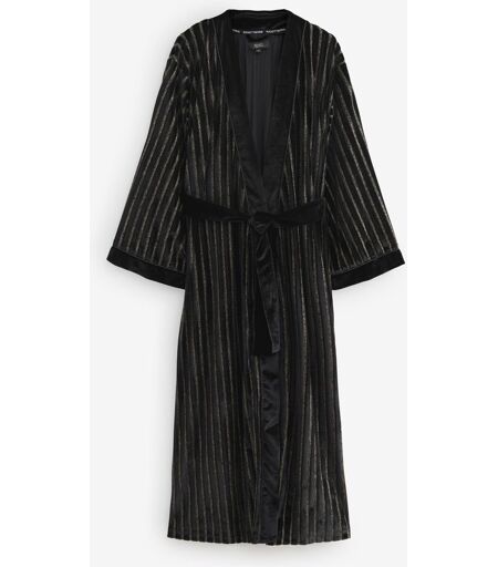 Indulge in the warmth of this black and gold robe from Rockett St George. A glamourous addition to your loungewear looks, this longline robe is crafted from a luxury velour fabric with gold metallic stripes weaved throughout. Complete with wide sleeves, a belt tie and RSG branding, this dressing gown takes relaxing to new heights. Pair with the matching pyjamas for complete look. Machine washable. 88% Polyester, 8% Elastane, 4% Metallised fibre. ...