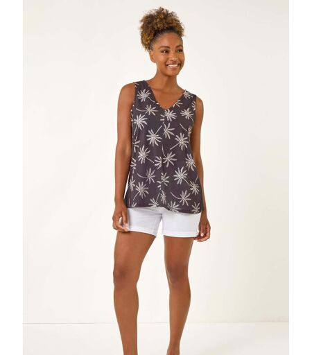 Roman Roman Black Palm Tree V-Neck Vest Top