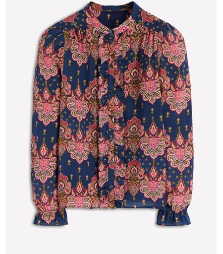 How to make this silk shirt even more sumptuous? Add romantic ruffles, gathers and blouson sleeves. And with the gorgeous choice of designs? Autumn is looking much brighter. Hand wash only. 100% Silk. ...